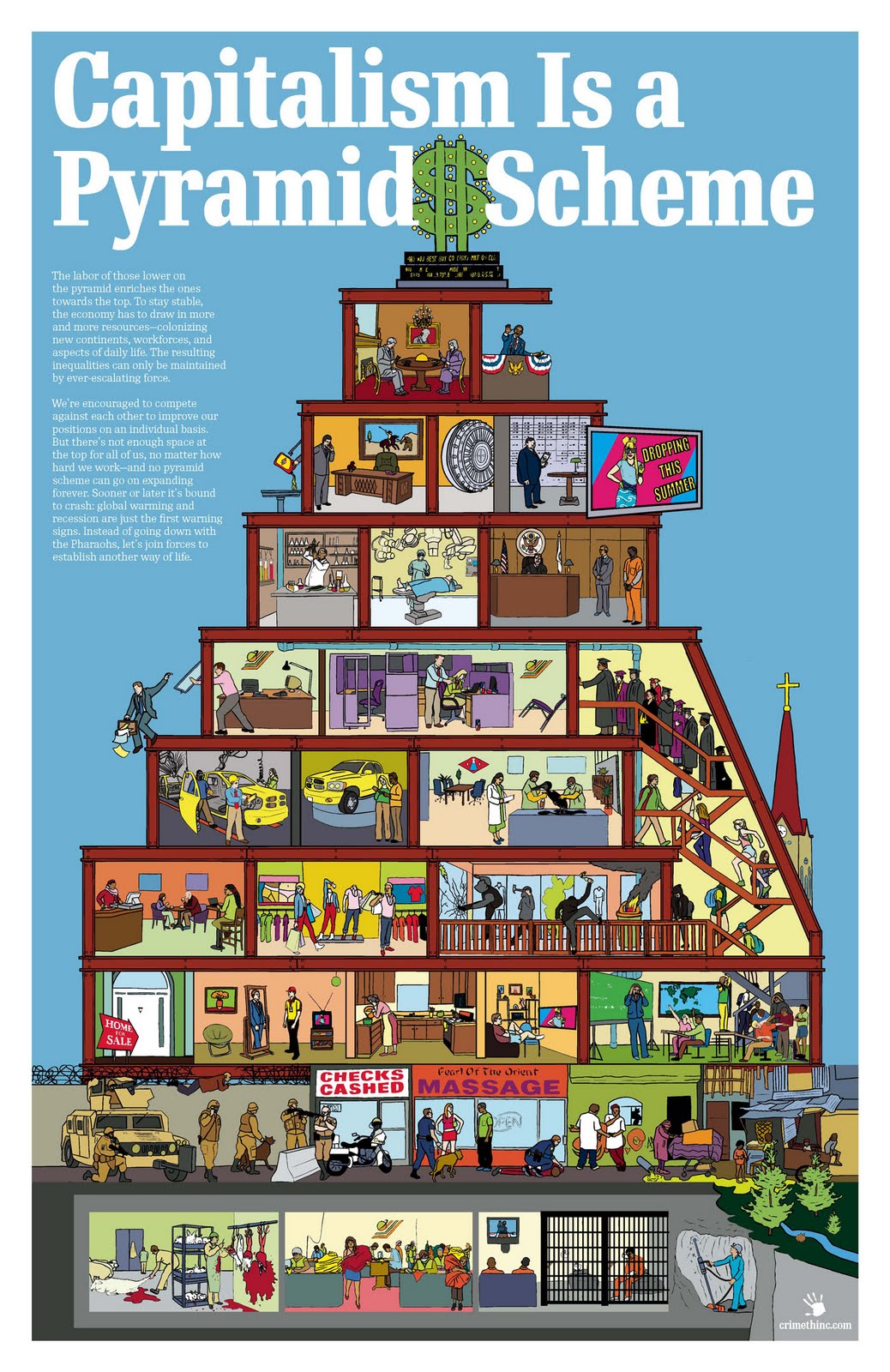 The most powerful, widespread, and influential components of society (dominant culture) present existential threats to the future of humanity (see: climate change and nuclear war). While this may sound hyperbolic, understanding dominant culture not as an abstract concept, but as the real-world effects of its components (capitalism, industrial civilization, White supremacy, patriarchy, etc.) exposes the litany of atrocities that creates the foundation for the sociopolitical order many view as the “default” state of the world.